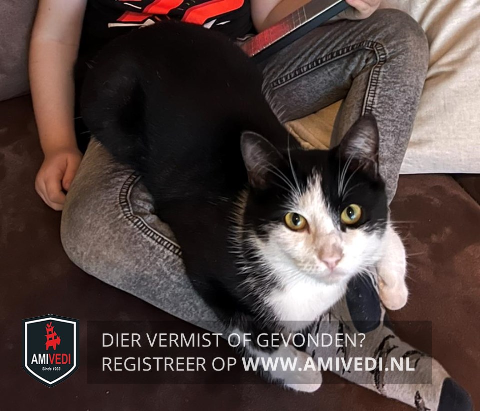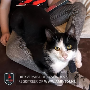 | Signalement | Overwegend zwart, met vooral veel wit op kop, poten en buik. Zwart petje en zwarte oortjes. Witte bles met links een beetje zwart. Bij het linkeroog loopt het zwart tot net iets na de binnenkant ooghoek (kan er soms als een viesje uitzien). Hij is slank, maar gespierd en begint echt te tonen als een volwassen mannetjeskat. |