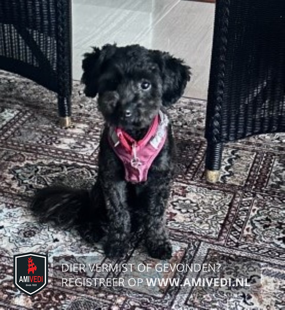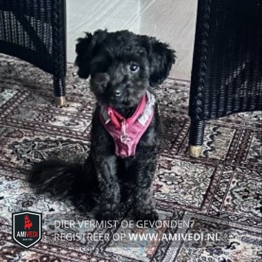 | Signalement | Zwarte jonge Pomsky Doodle. Aangereden door een auto en gevlucht. |