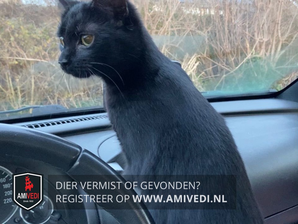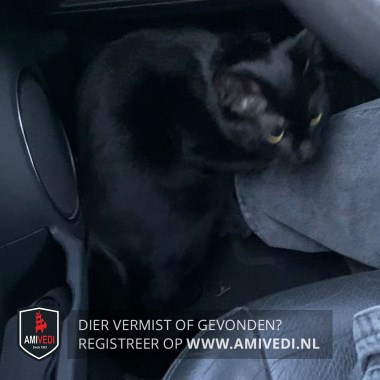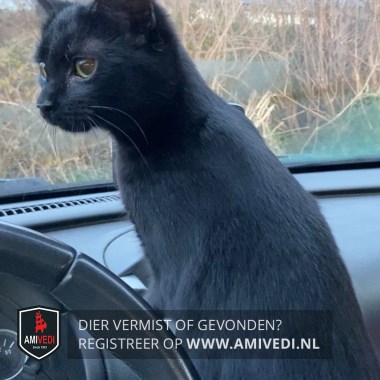 | Signalement | vrijwel geheel zwart met klein stukje wit bij de kin. Heeft een operatiewond en geschoren buikje |