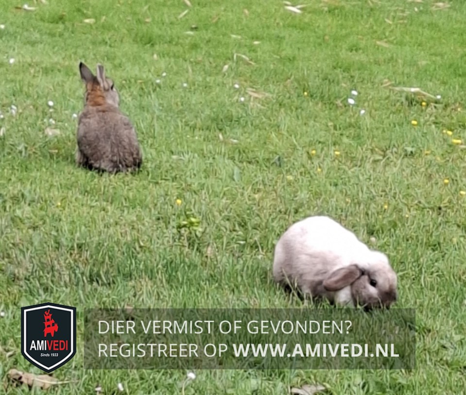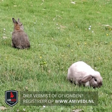 | Signalement | Twee konijnen 1 Crèmekleurig met hangoren de andere bruin. |