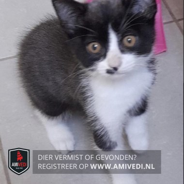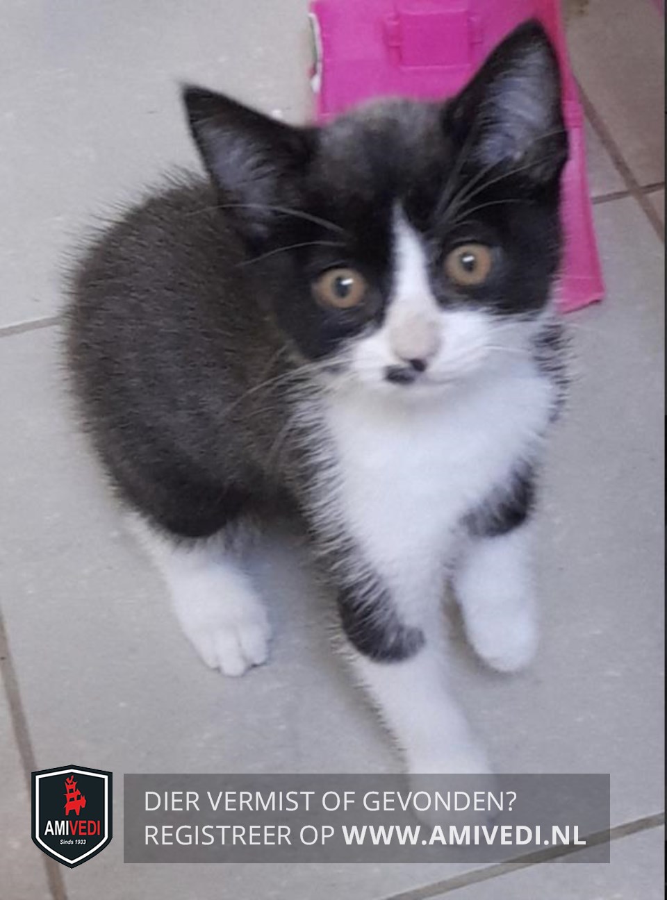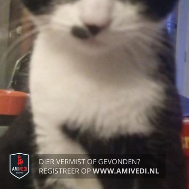 | Signalement | Zwart met witte kater. Witte bles en snoet met een zwart vlekje onder de neus. Witte kin, bef en poten. Borst is een gedeelte zwart met uitloop naar de de zijkant van de voorpoten. |