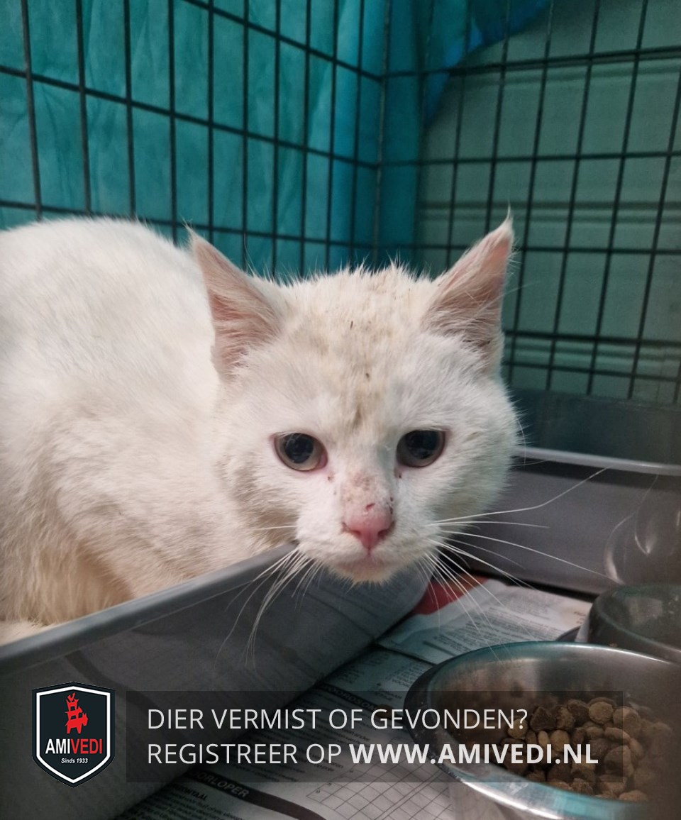 | Signalement | Europese korthaar, volledig wit met gele ogen. |