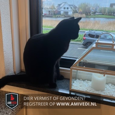 | Signalement | Geheel zwarte kater zonder andere kleuren. |