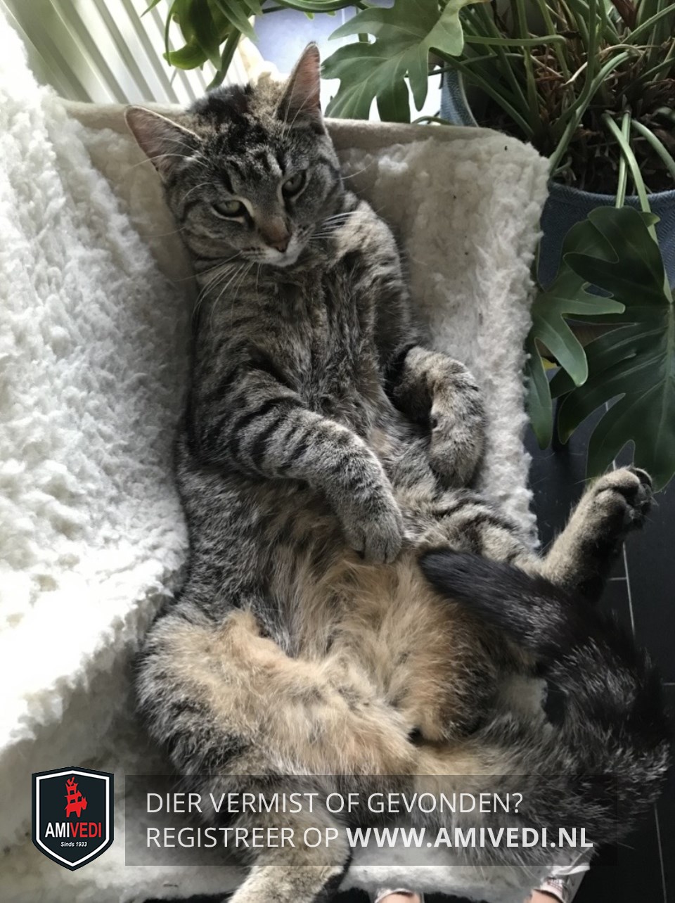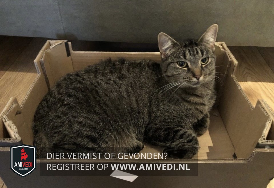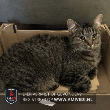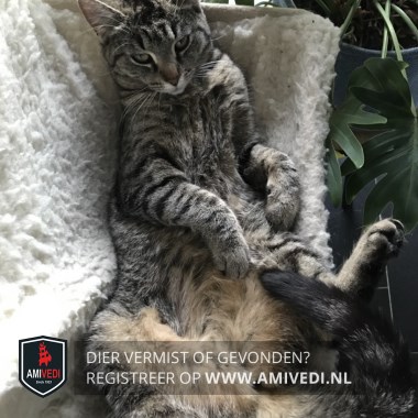 | Signalement | Cypers grijs/zwart/bruin gestreept met een beetje wit bij het snorretje en kin. |