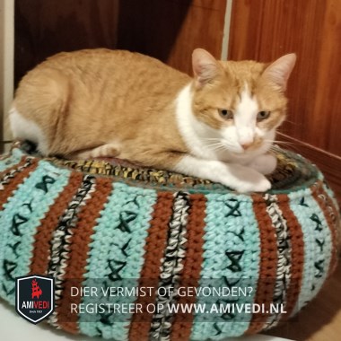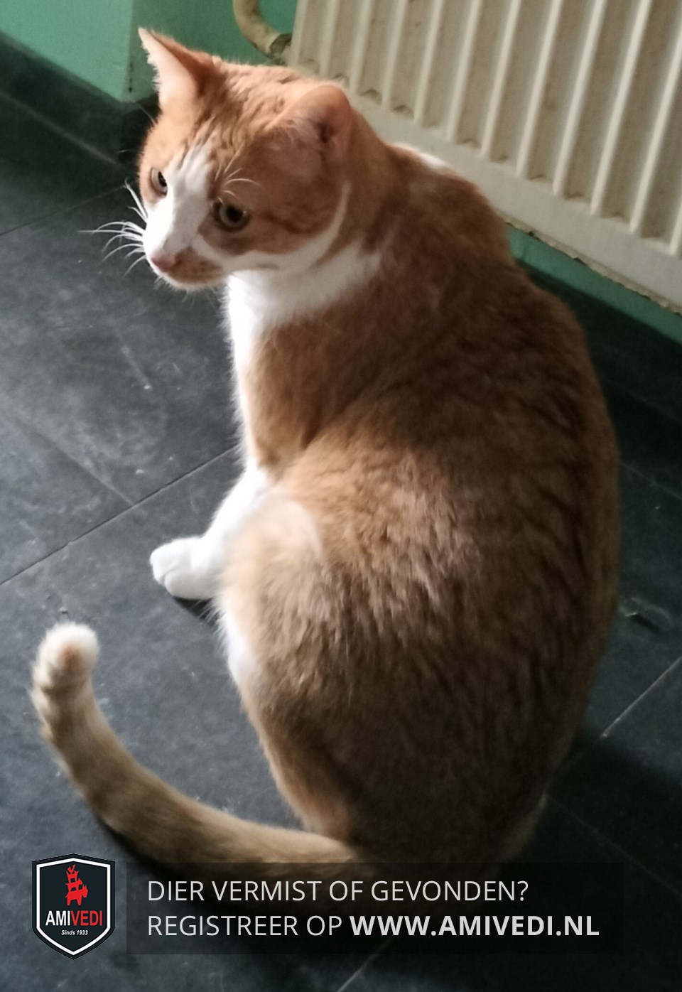 | Signalement | Cypers rood/oranje met een witte neusbrug, snuit, bek en borst. In de hals wit tot bijna in de nek. Voorpoten witte laarzen, bij de linker voorpoot loopt het wit door tot op de borst. Achterkant rechter achterpoot iets wit. Links naast de snuit een plekje rood/oranje. Kan onberekenbaar zijn. |