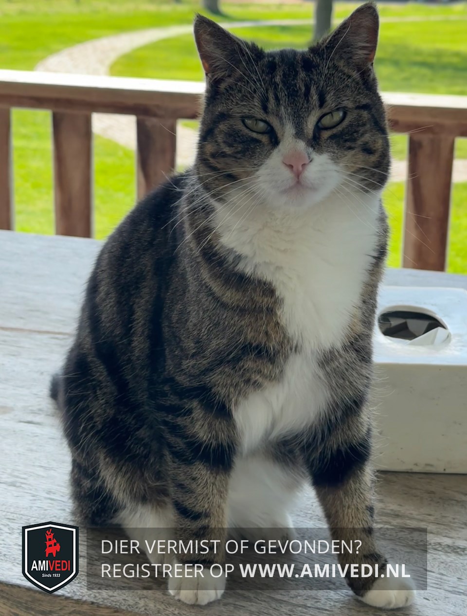 | Signalement | Cypers grijs-zwart met witte snuit, kin, bef, borst en buik, voorpootjes witte voetjes, achterpootjes witte laarsjes, redelijk dik. |