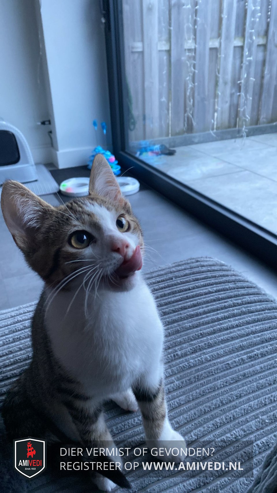 | Signalement | Grijs/zwart cypers met wit. Witte snoet en bles. Witte grote bef en borst. Cyperse voorpoten met witten sokken. Cypers van af de ogen op de kop en oren. Cypers op de rug en staart. Heeft een zwart onderlipje en roze neusvleugels. |