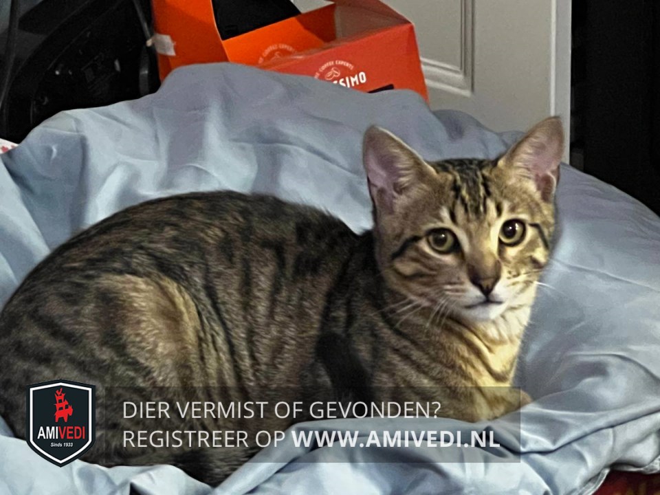 | Signalement | bruin,wit,zwart kater |