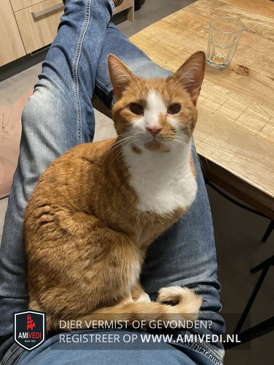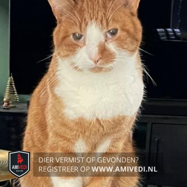 | Signalement | Cypers rood gestreept met witte accenten: neusbrug grotendeels wit, rechter wang, linker wang gedeeltelijk, brede witte bef, wit voetje aan de linkervoorpoot, witte laars aan de rechtervoorpoot, klein rood vlak op de linkerwang bij de neus |