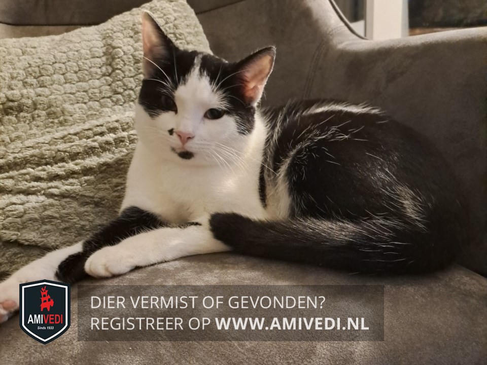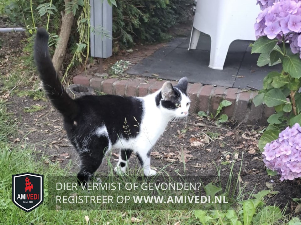 | Signalement | Miep is zwart met wit. Bovenlijf heeft veel wit, haar achterlijf juist veel zwart. Ze heeft rondom de oren zwart en rechts naast de neus een zwart vlekje en links op de kin ook een zwarte vlek. |