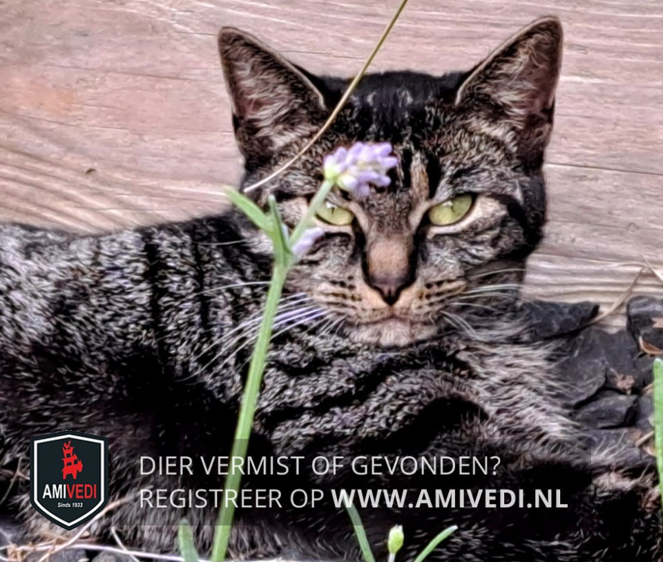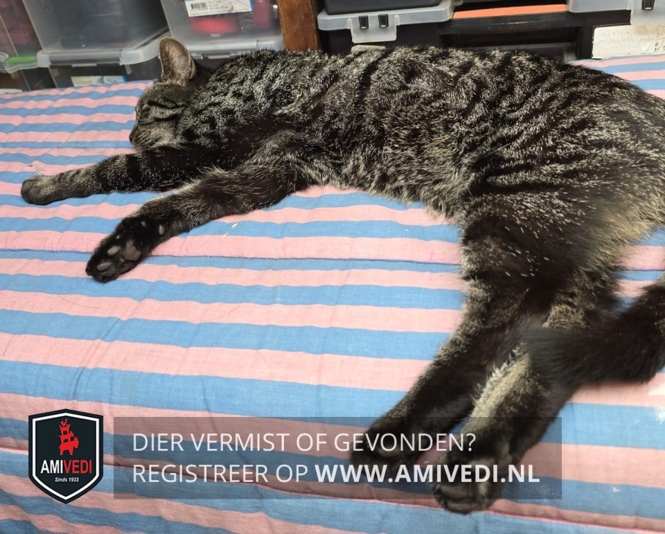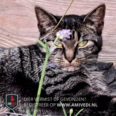 | Signalement | Cypers bruin/grijs-zwart gestreept. Lichaam is warm grijs-zwart gestreept. Koppie is bruin cypers gestreept. Onder de pootjes zwart. Mooie slanke poes |