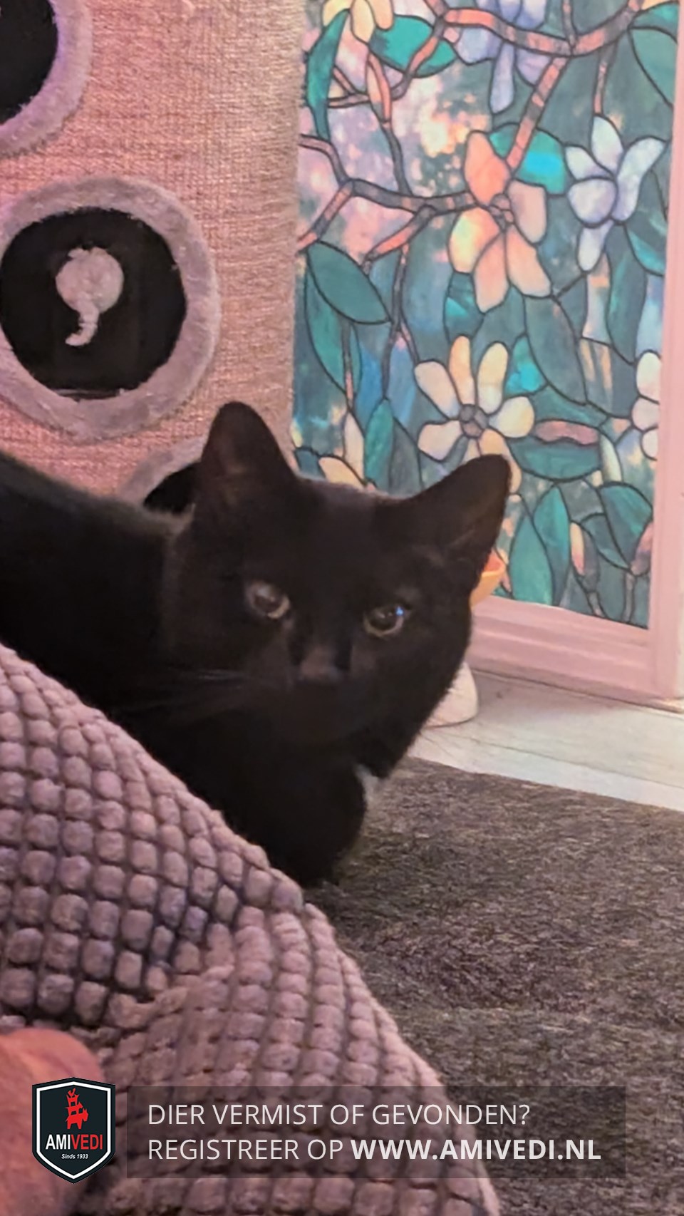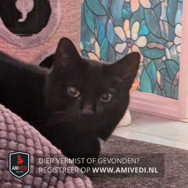 | Signalement | Zwart met wit vlekje op haar borst. Haar staart staat een beetje naar voren, alsof het een handvat is boven haar rug |