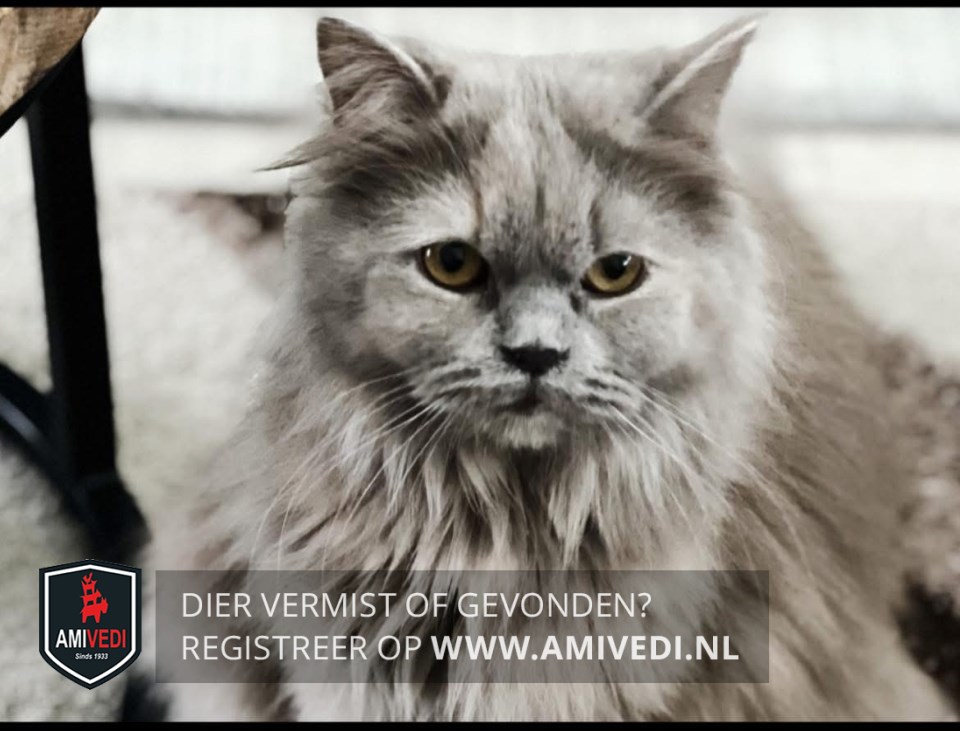 | Signalement | Brits langhaar grijs/bruin gemeleerd. |