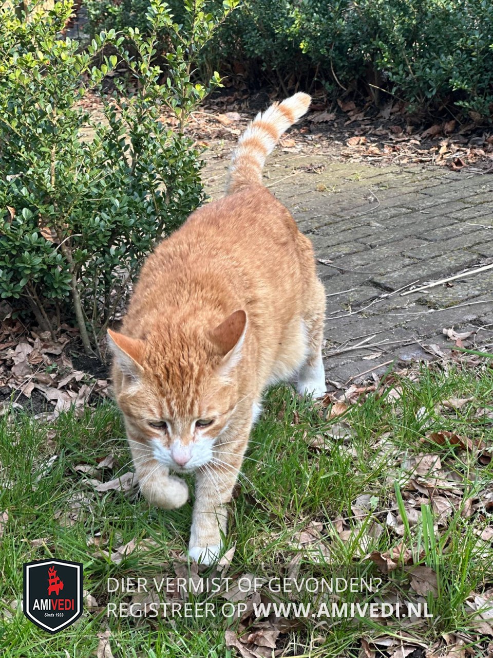 | Signalement | rood/wit witte snoet, rood op de rug, wit op zijn buik en Wit/ rood Gestreepte staart. Witte sokjes. Basje kijkt een beetje scheel/ loenst en heeft wat haar klitten boven op zijn rug. |