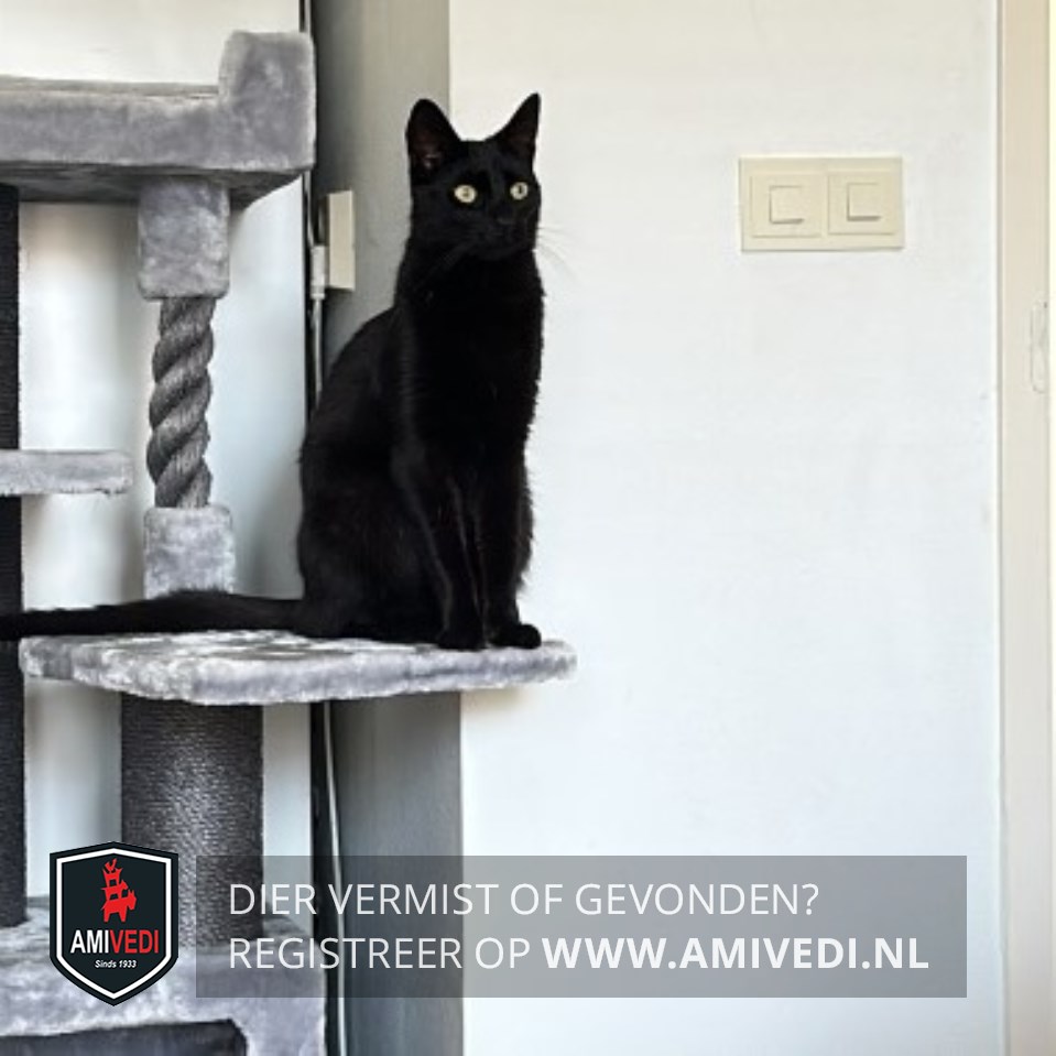 | Signalement | Geheel zwart. Grote oren, spitse kop, gele ogen. |