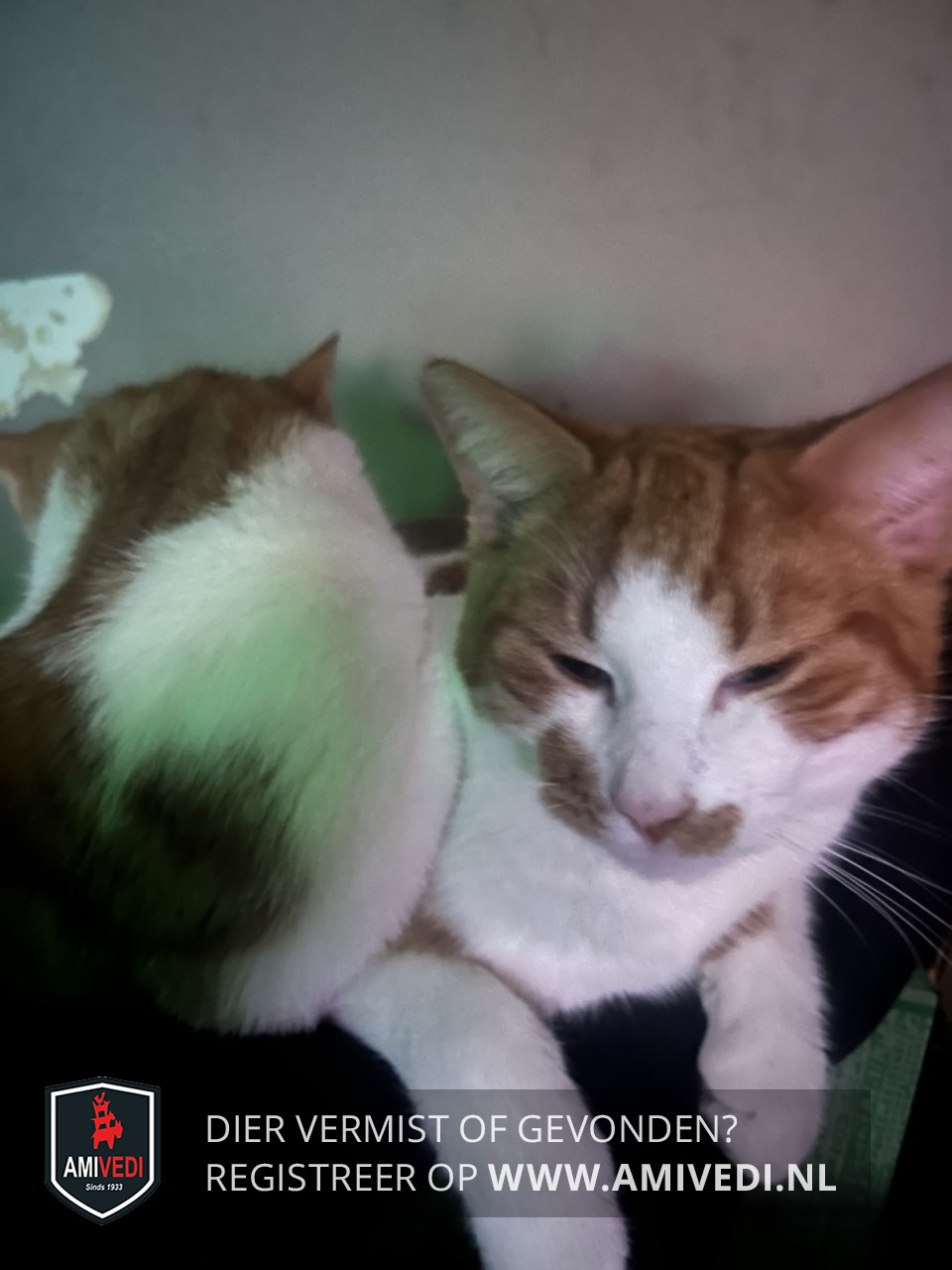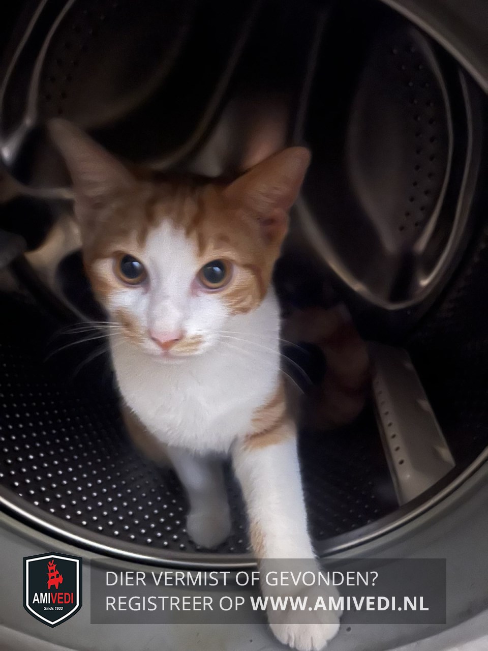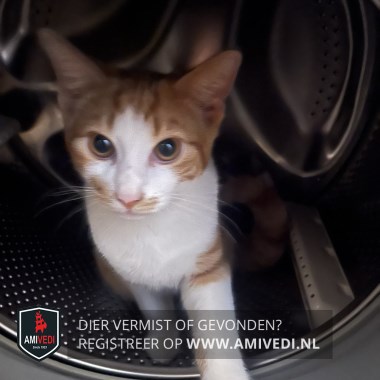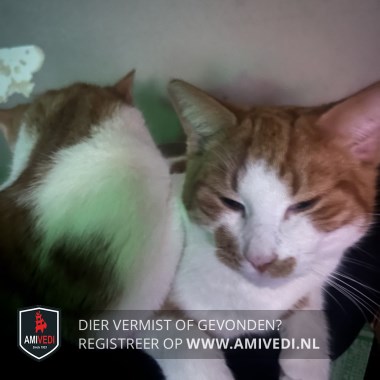 | Signalement | Cypers rood gestreepte kater met rode oortjes en oogjes, een witte bles en snuit en 2 rode vlekjes naast zijn neus. Witte pootjes en witte onderkant met een cypers rood gestreept lijfje en staart. |