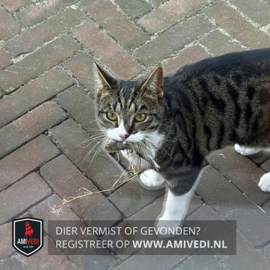| Signalement | Gezonde jonge kater met een mooi tijgerpatroon gecombineerd met witte pootjes. wit onderaan de snoet. |
