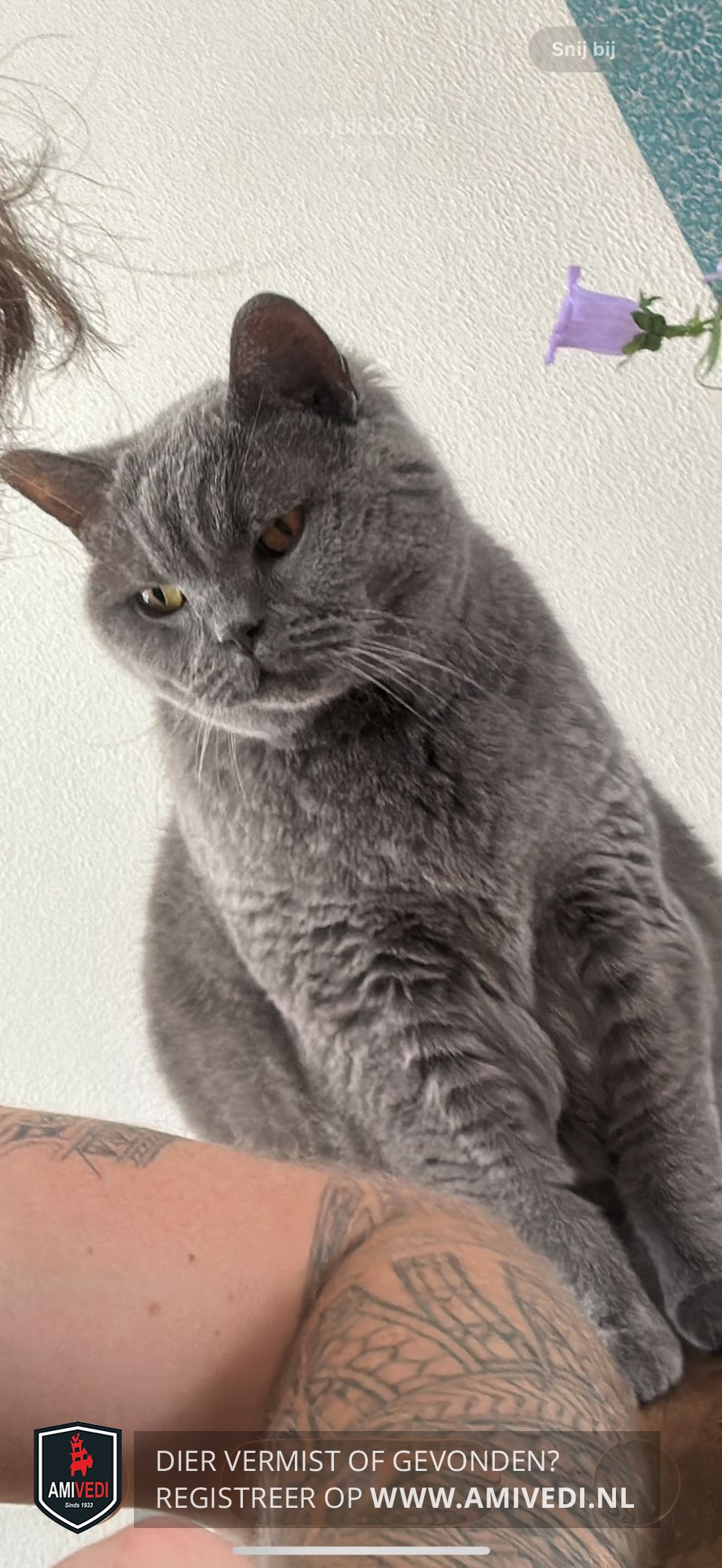 | Signalement | Egaal kortharige grijze Britse Korthaar. Let op: Doof!! |