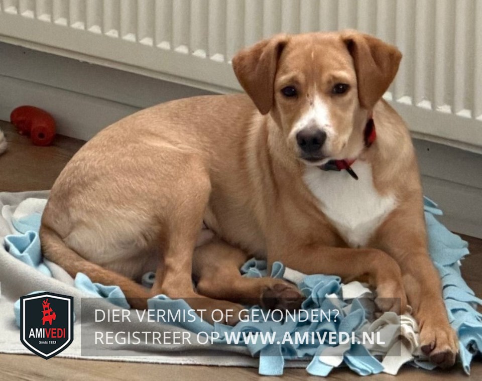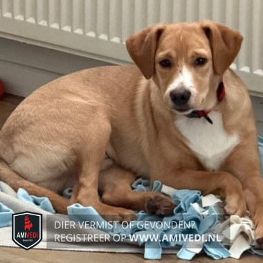 | Signalement | Bruine kop,witte vlek op de neus,witte bef,bruine rug en staart,bruine voor en achterpoten. |