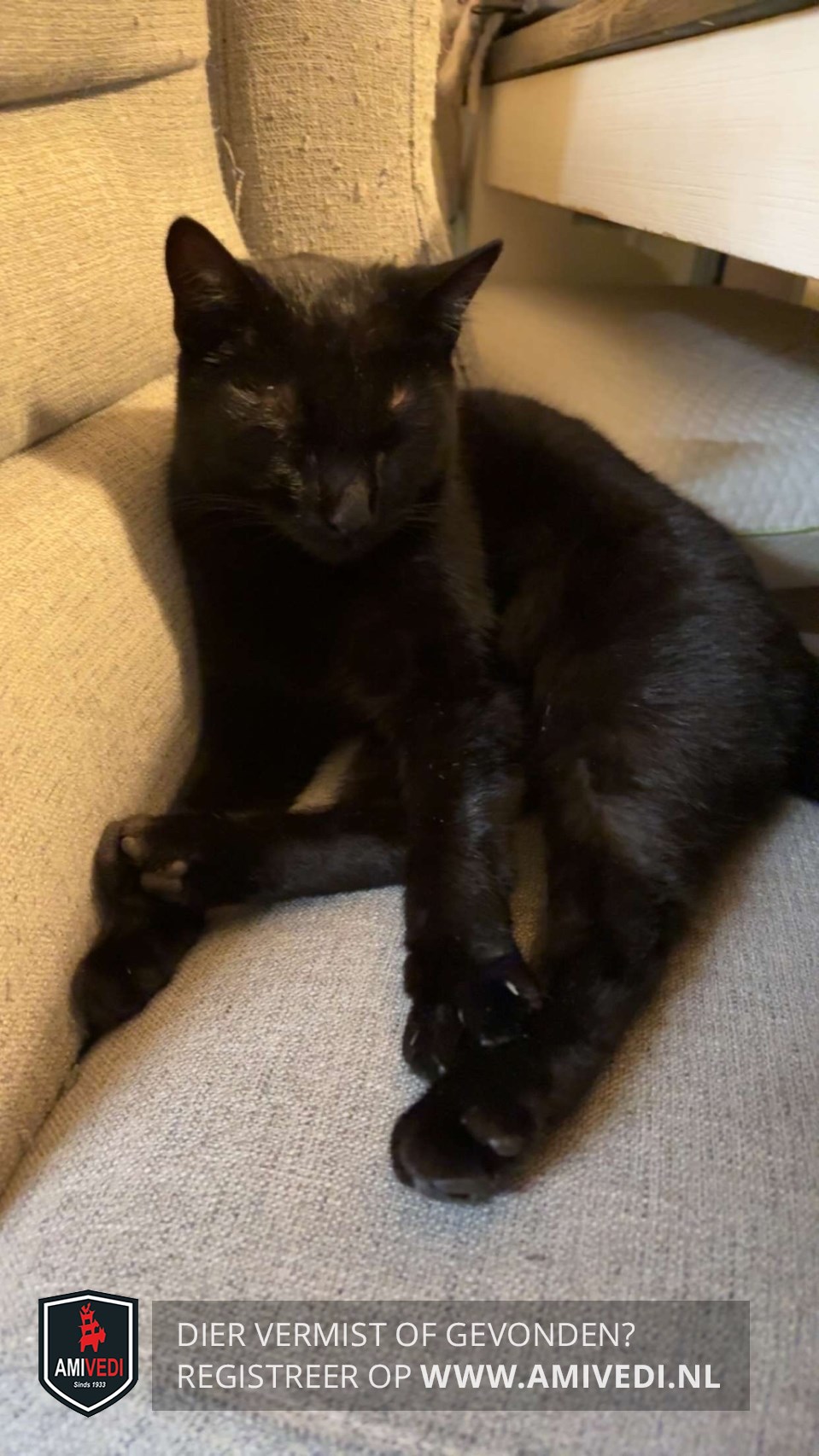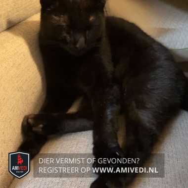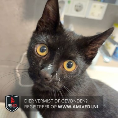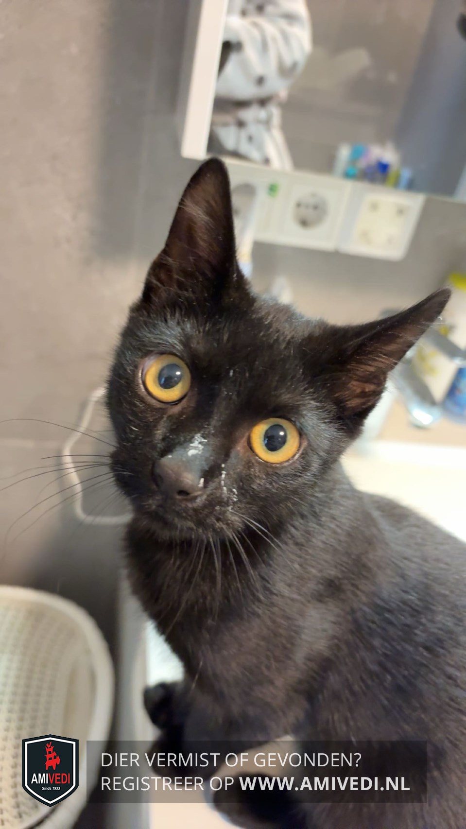 | Signalement | Zijn rechteroog heeft een beetje wit waas aan de buitenzijde. Zitten wat harde knobbeltjes in zijn nek. Iets kalend boven ogen. Kleine kater met amber kleurige ogen. |
