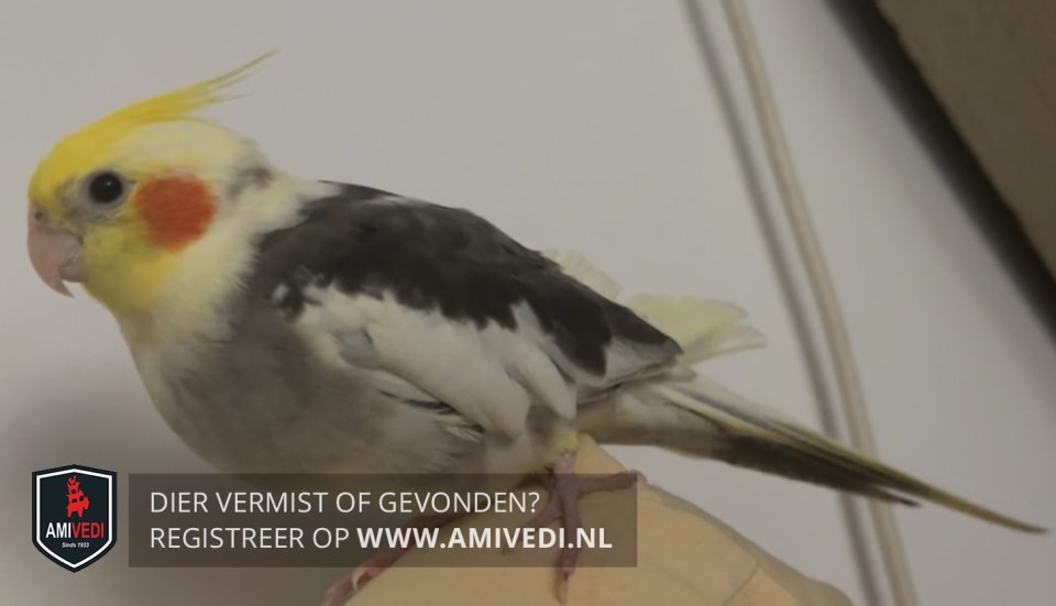 | Signalement | Geel - grijs met wit, gele kuif en kopje oranje wangen, lichtgele borst, grijs met witte rug, grijs wit met gele staart, tam. |