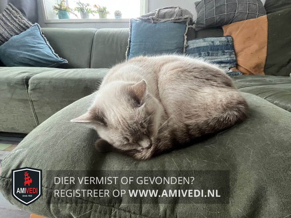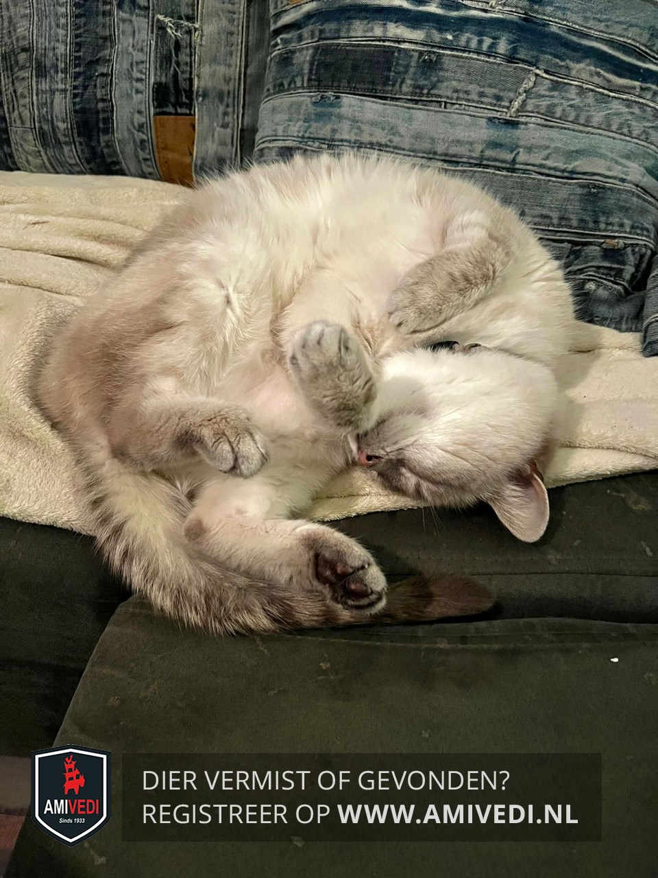 | Signalement | Witte/lichtgrijze vacht met grijs masker, oren en pootjes en een cypers grijze staart |