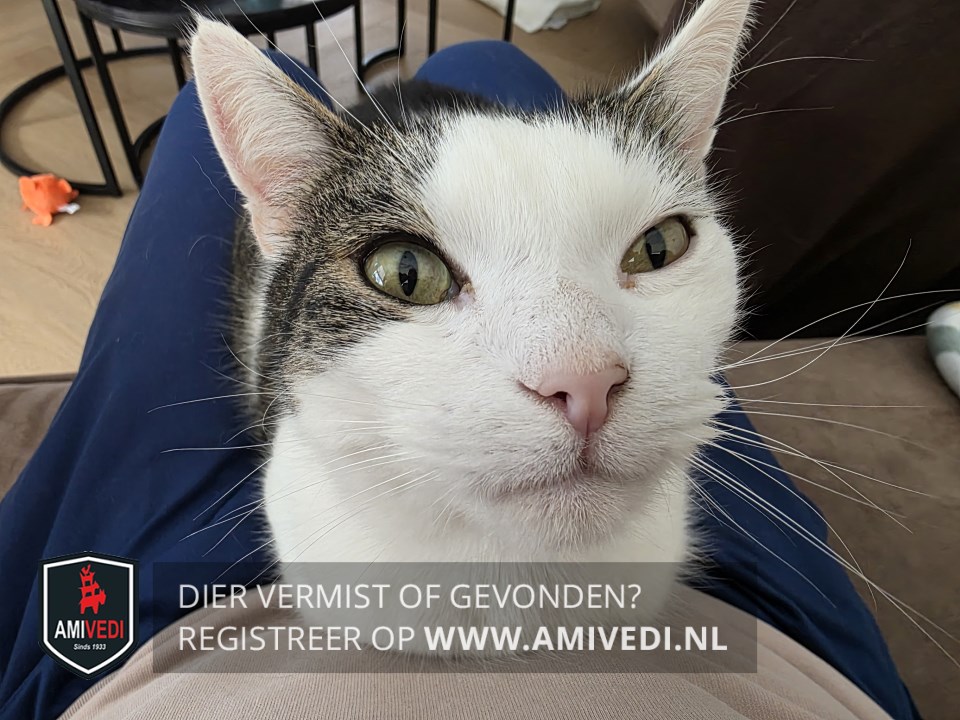 | Signalement | Wit met cypers grijs/zwart. Rondom beide oren cyperse vlek, rechts loopt het door naar het oog. Cyperse vlek op de rug, flank en richting de staart. Heeft een roze bultje op één van zijn voorpoten. |