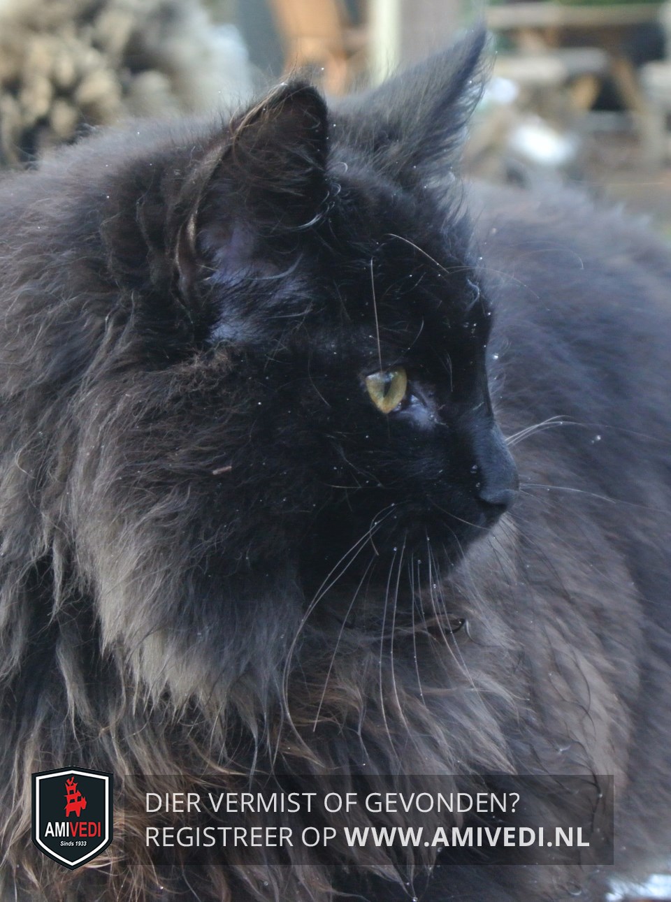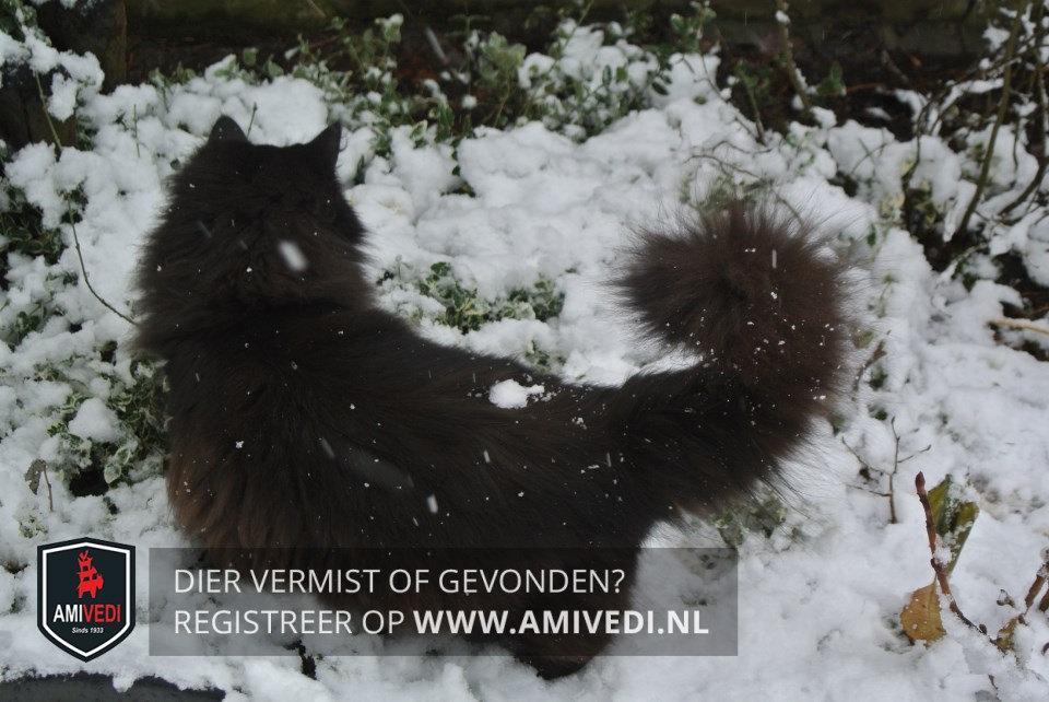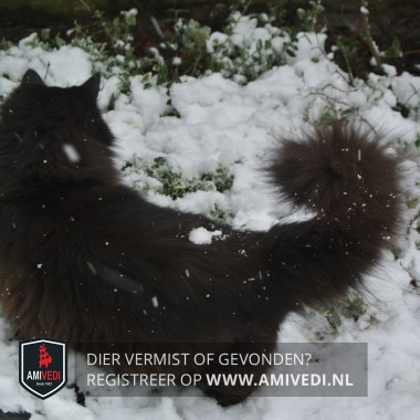 | Signalement | Klein zwart gedrongen poesje met lange haren |
