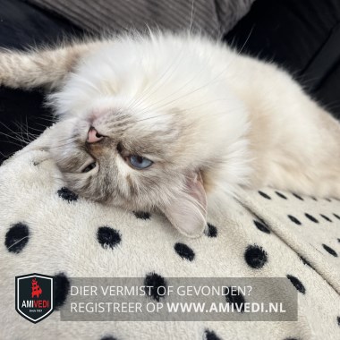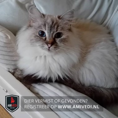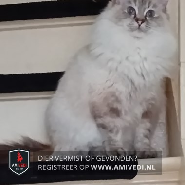 | Signalement | Wit/grijs/bruin gestreept. Blauwe ogen donkere oortjes, poten en staart. Voor de rest heel licht. |
