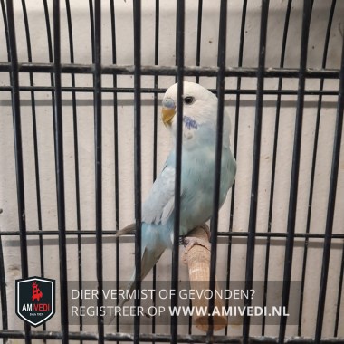 | Signalement | Grasparkiet blauw met wit. Kop wit met blauwe wangen. Neus lichtblauw en rug, borst en vleugels lichtblauw. Draagt een zwarte ring aan rechterpoot met jaartal 2025. |