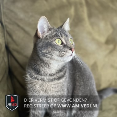| Signalement | Poes cypers grijs met wit. Bovenop kopje grijs gestreept en voor op de borst 2 donkergrijze strepen. Vacht is grijs met lichtgrijs gemêleerd. Witte snor en witte kin, groene ogen. |