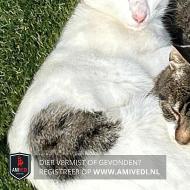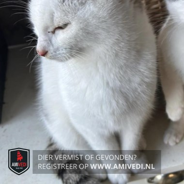 | Signalement | Overwegend wit met cypers grijs zwart gestreepte vlekken, Tussen de oren en deels over de achterzijde van de oortjes een grijs cyperse vlek die doorloopt tot op het achterhoofd, cypers grijs zwarte vlek op de zijkant rechts, cypers grijs zwart geringde staart. |