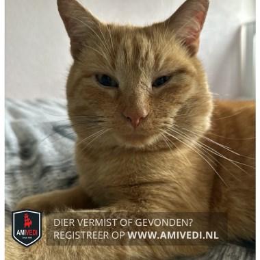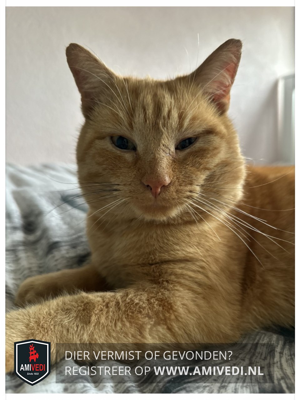 | Signalement | Cypers oranje-rood, is kort van stuk en heeft een brede kop. Hij houdt al langere tijd zijn rechteroog gedeeltelijk dicht. |