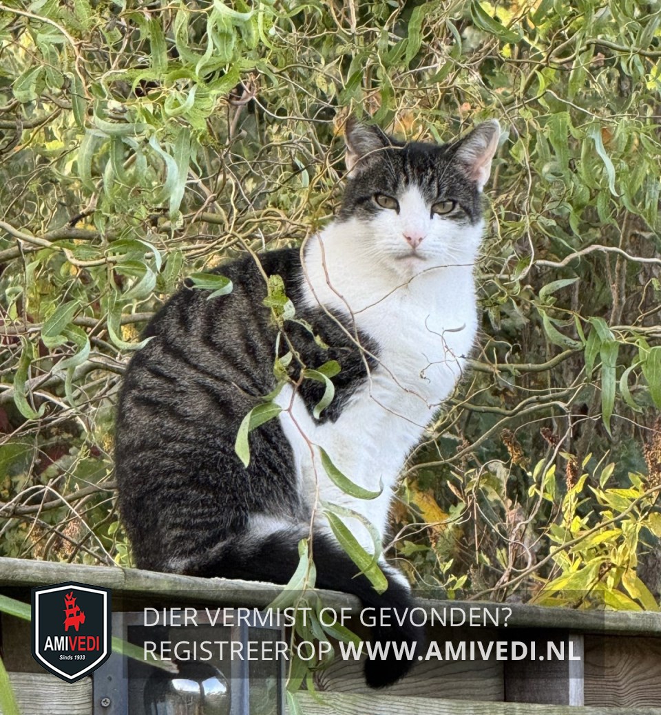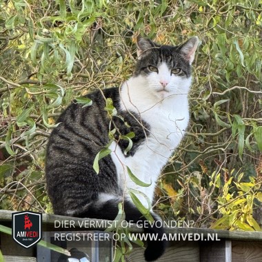 | Signalement | Grijs/ zwart gestreept met wit. Witte snuit, kin, hals, bef, borst, buik, pootjes. Zwarte staart. Diesel is grote kat van ongeveer 5,5 kilo. Hij komt niet snel naar onbekende mensen toe. |