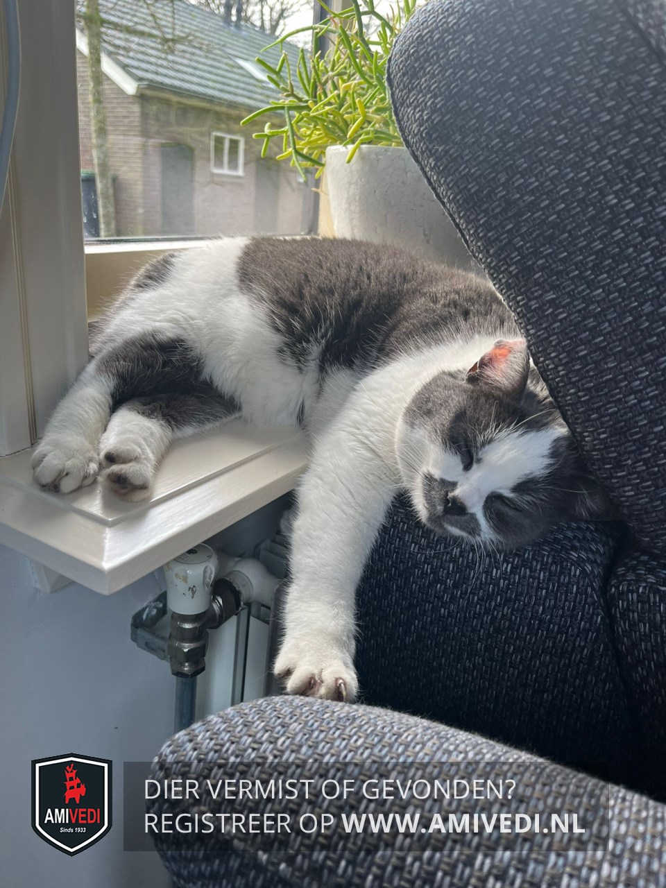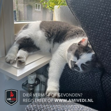| Signalement | Grijs snorretje, witte bles grijze oren, grijze vlek op rug en tussen de achterpoten. Witte schouders en rechter voorpoot. |