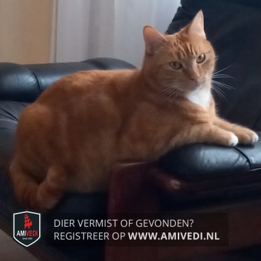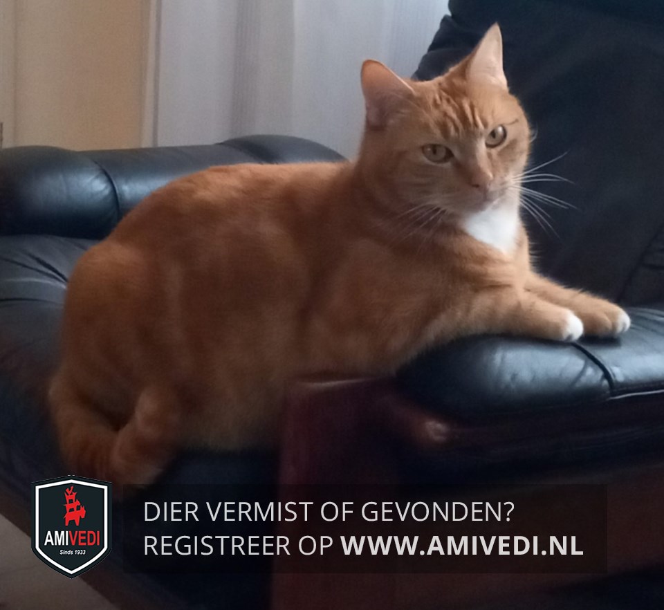 | Signalement | Cypers rood/oranje gestreept met wit. Kleine bruine vlekjes op onderlip. Wit op zijn borst en in ieder geval witte tenen aan zijn voorpoten. |