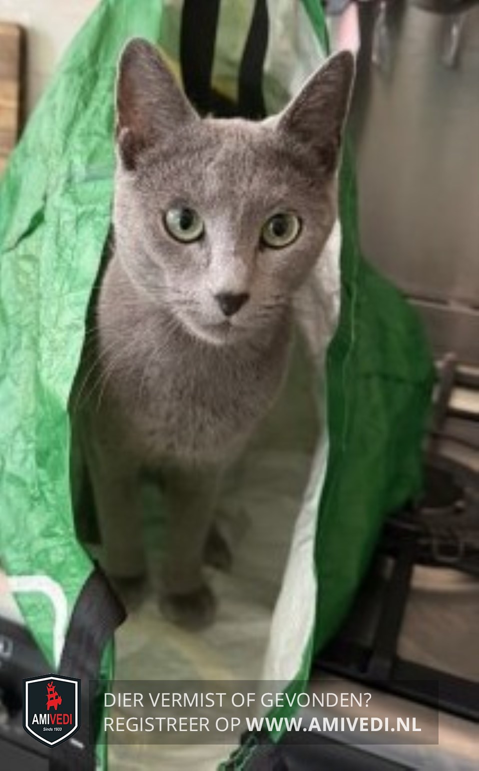 | Signalement | Grijs met gele ogen erg slank |