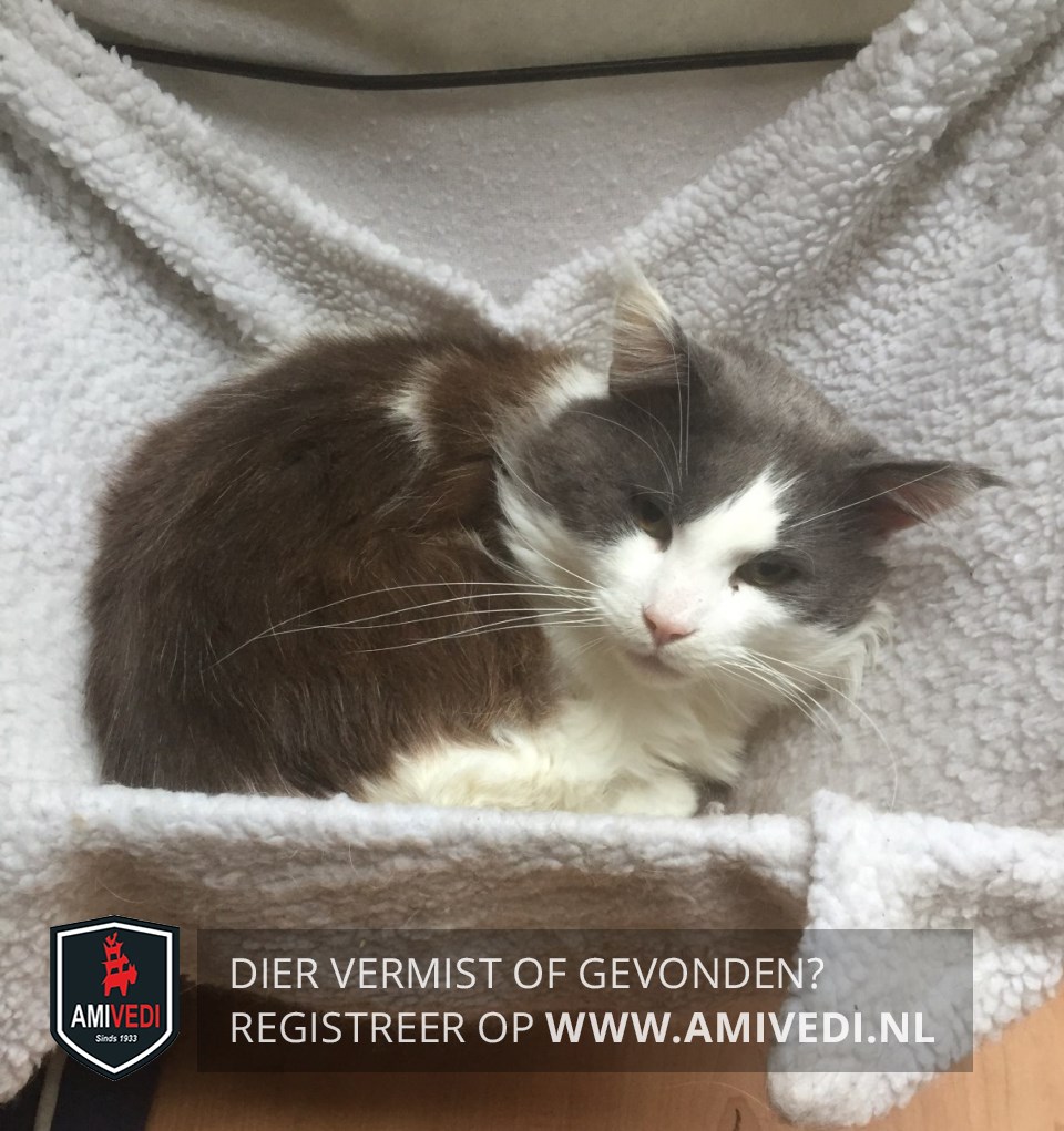 | Signalement | Wit met grijs. Grijs boven ogen, op koppie, rug is meest grijs. Rechteroor witte punt, linkeroor is grijs. Medicatie afhankelijk. Draagt een zwarte vlooienband. |