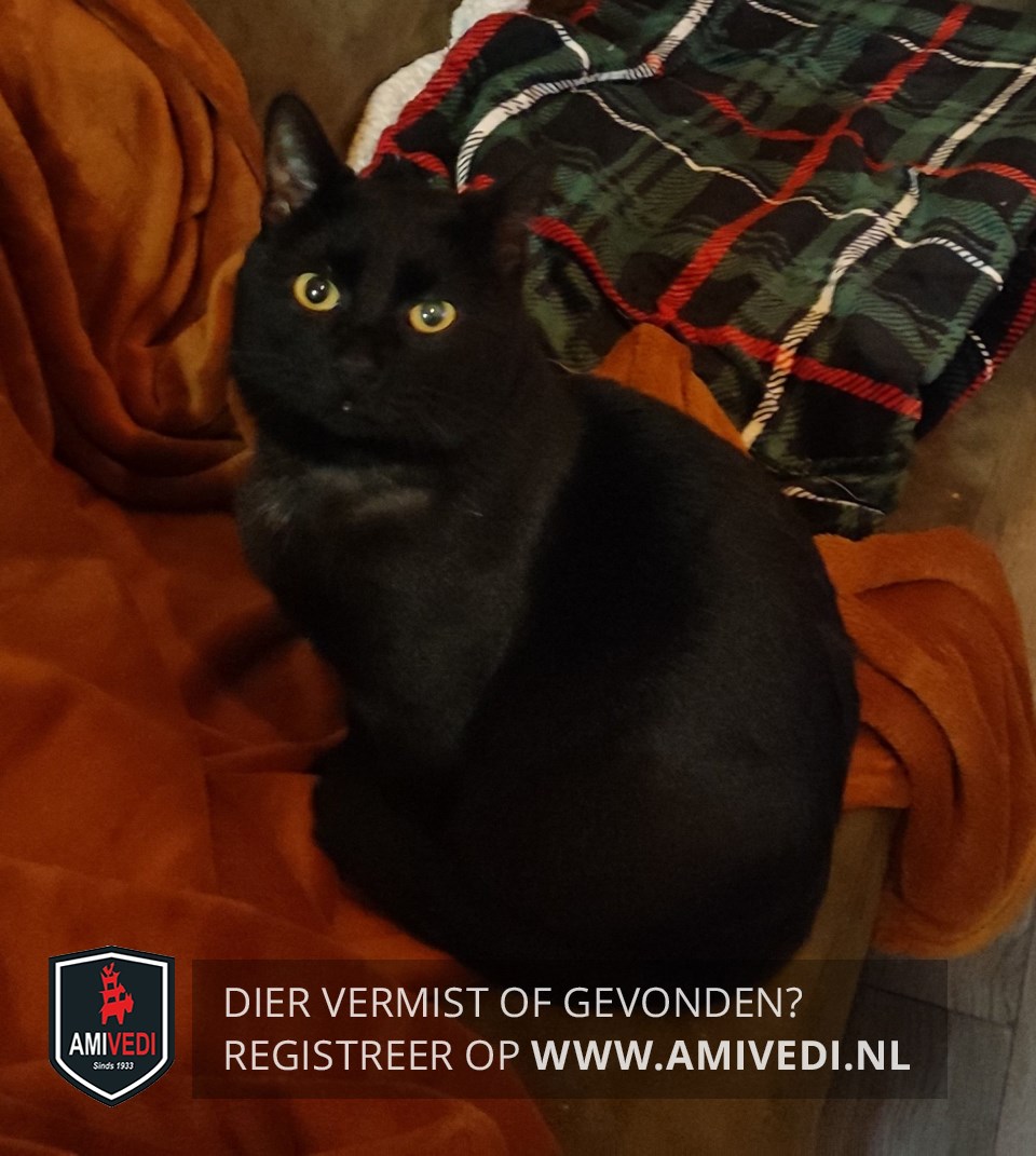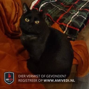 | Signalement | Volledig zwarte kater met tractive tracker. |