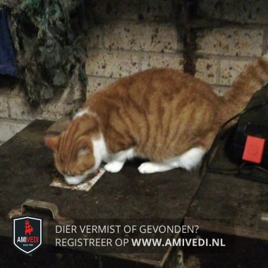 | Signalement | Cypers rood/oranje. Wit snoetje, kin, bef en borst. Witte pootjes. |