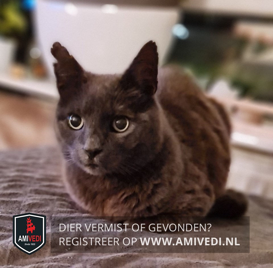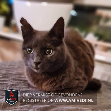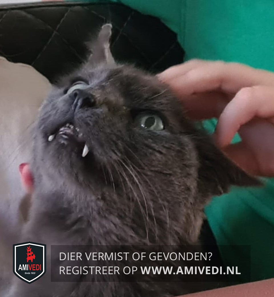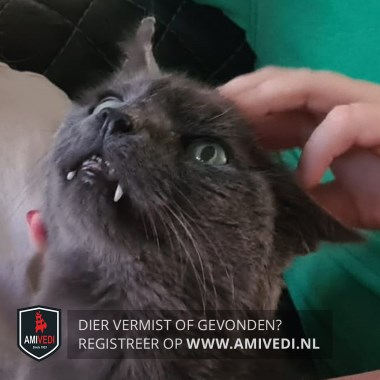 | Signalement | Grijze kater, mist een paar stukjes van zijn rechter oor, uitstekende hoektanden |
