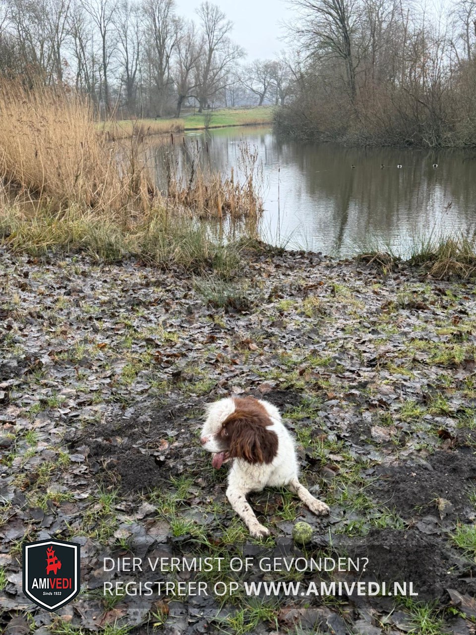| Signalement | Bruin met witte Friese Stabij, bruin bovenop de kop en oren, witte snuit, witte keel en borst, witte rug met bruine vlek, witte poten met bruine spikkeltjes |