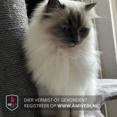 | Signalement | Grijs snuitje en oren. Blauwe ogen. Wit lijf. |