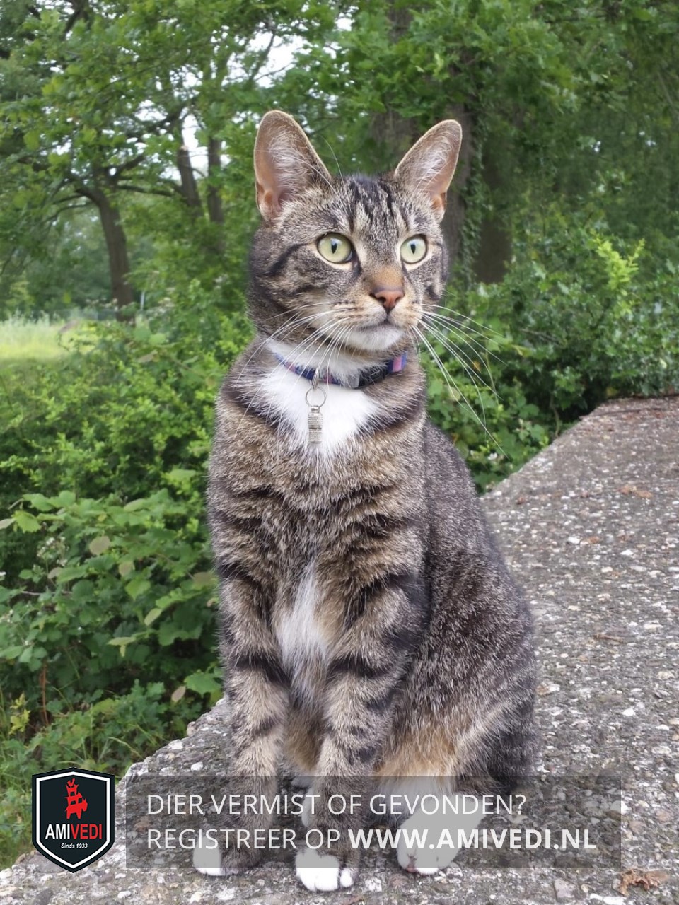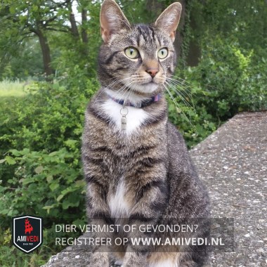 | Bandkleur 1 | Halsband met een metalen plaatje voorzien van telefoonnummer |