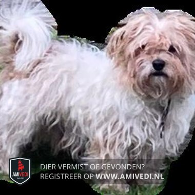 | Signalement | Blond/beige boomer-achtig hondje. Langhaar. Boets ziet slecht en is redelijk doof. Grijs/ blauwe halsband. |
