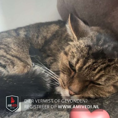 | Signalement | Cypers bruin/zwart, witte snor en witte kin. Achterpoot rechts witte voet. |