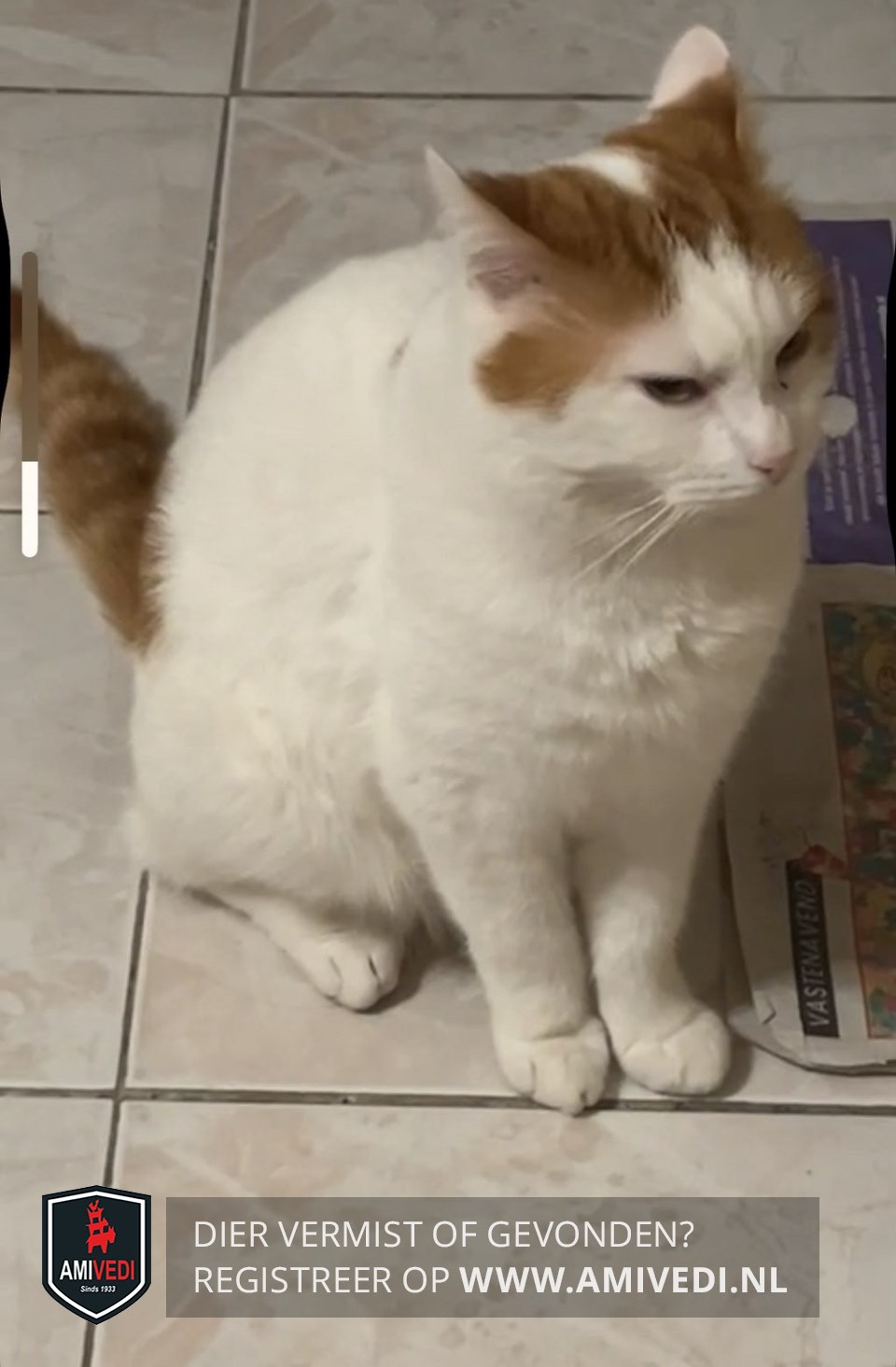 | Signalement | Wit met rood boven op de kop, puntje van de oren zijn wit, rode vlek tussen de schouders en op de rechter heup, rode staart met donker rode ringen. |