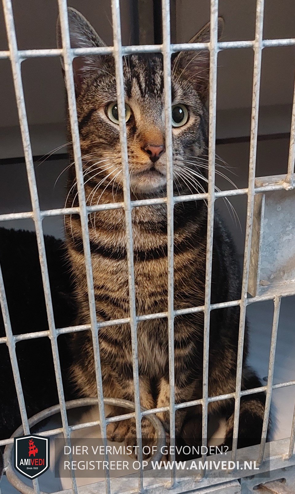 | Signalement | Geheel cypers bruinzwart gestreepte kater; brede zwarte band over de gehele borst; onderkant neusje is donker, verder roze; donkere staart |