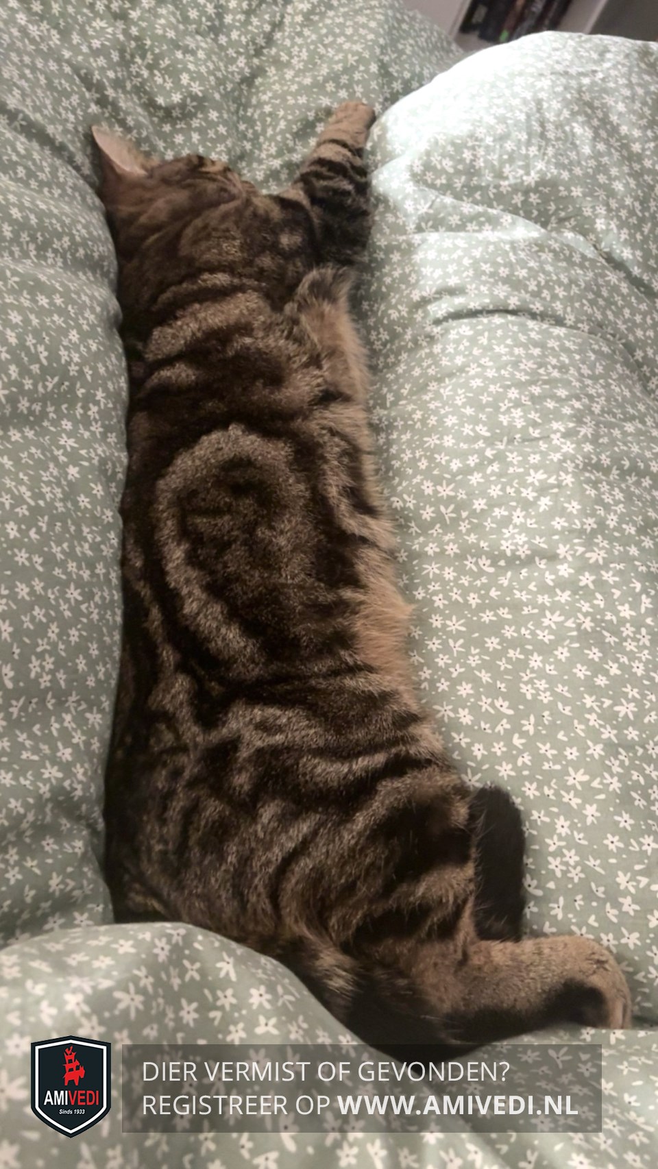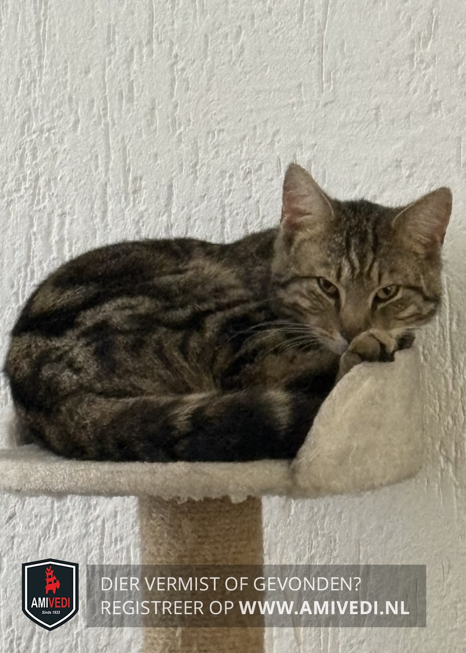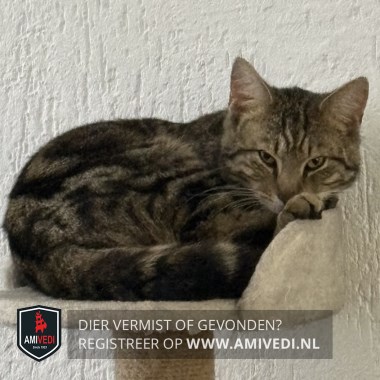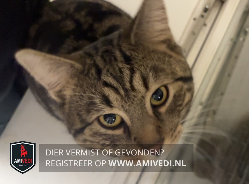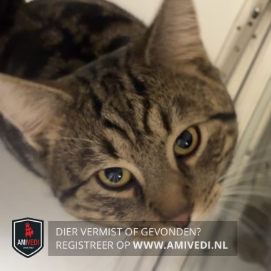 | Signalement | Cypers bruin-zwart met een witte kin, draagt een donkerblauw halsbandje met zijn naam erop. |