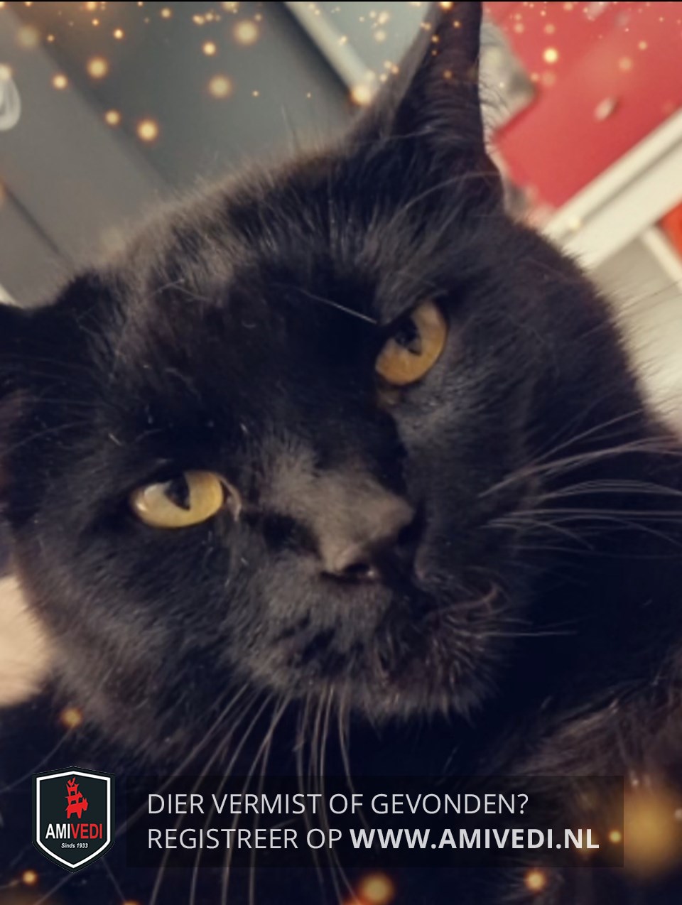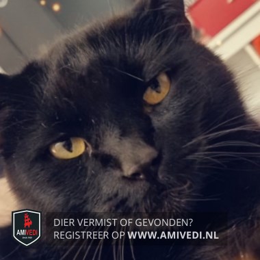| Signalement | Simba is compleet zwart met een klein wit vlekje op z'n borstkast. |